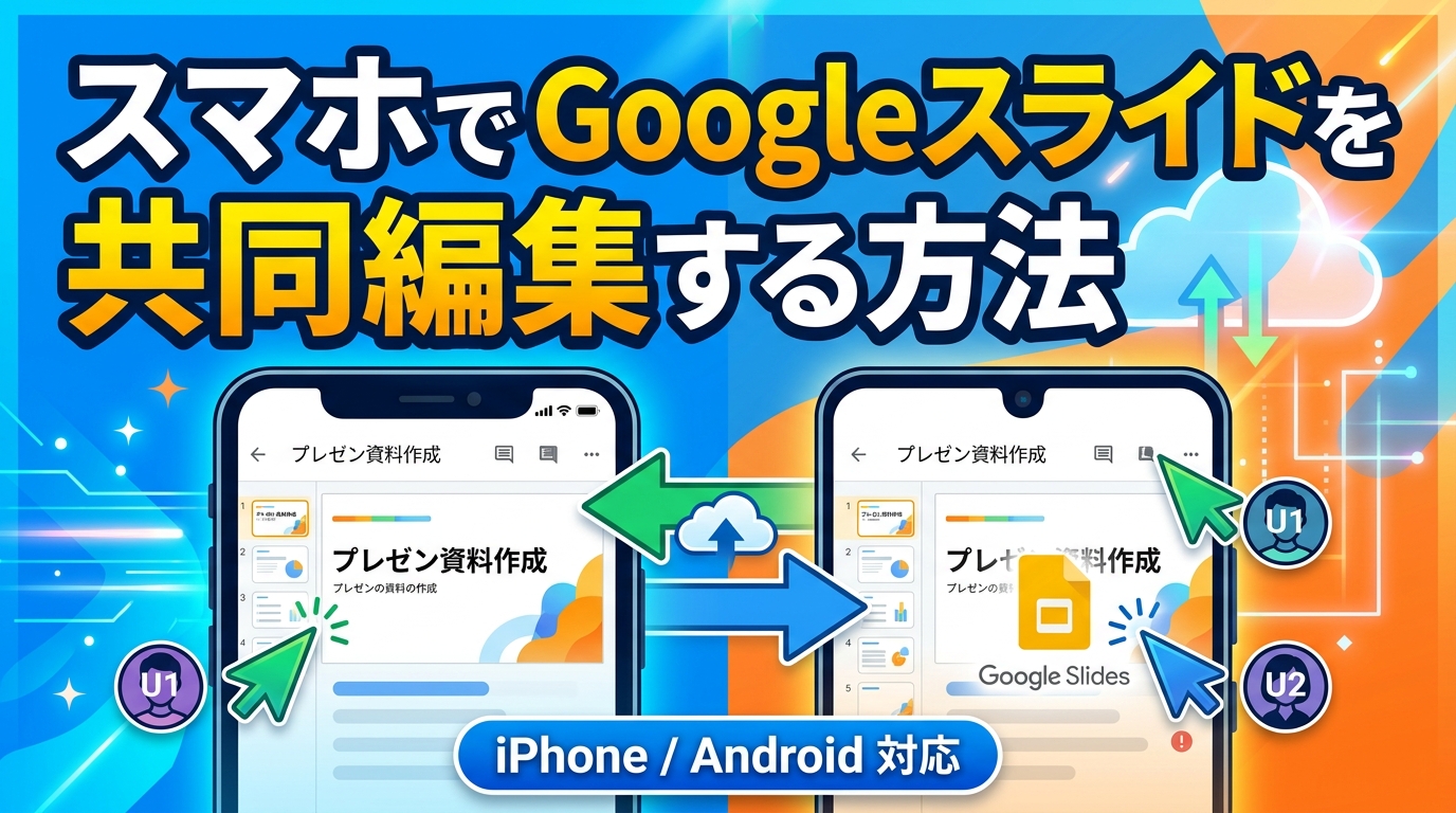 本記事では、スマホでGoogleスライドを共同編集する方法の基本手順、iPhone/Androidの違い、PCとの使い分けまでわかりやすく解説します。(専門知識は不要です!)