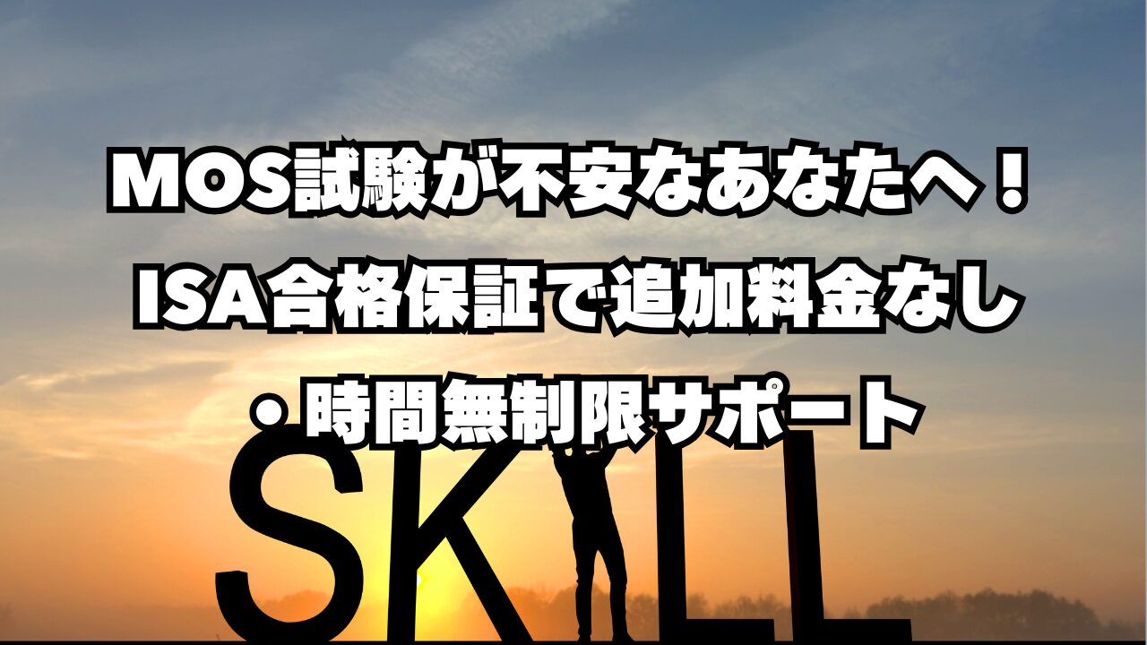 - MOS試験が不安なあなたへ!ISA合格保証で追加料金なし・時間無制限サポート
