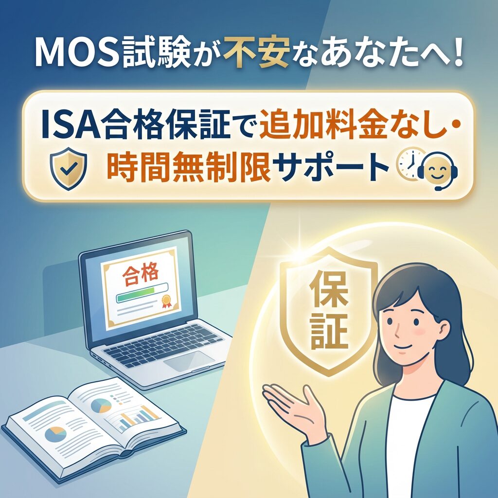 MOS試験が不安なあなたへ!ISA合格保証で追加料金なし・時間無制限サポート