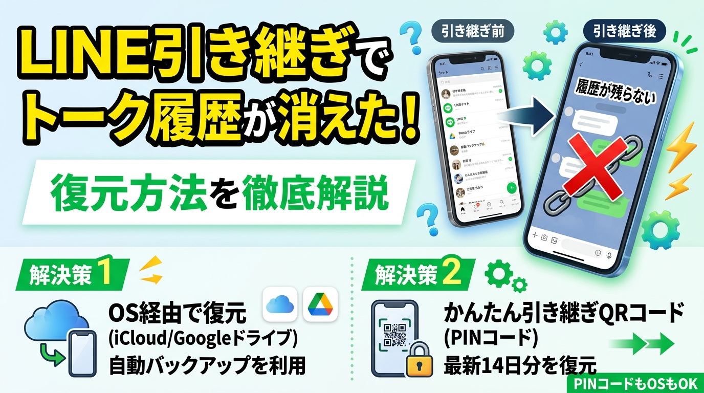本記事では、LINE引き継ぎでトーク履歴が戻らないときの原因と対処法を、同じOSかどうか、バックアップの有無、PINコード設定の有無、旧端末が使えるかどうかに分けてわかりやすく解説します。(専門知識は不要です!)