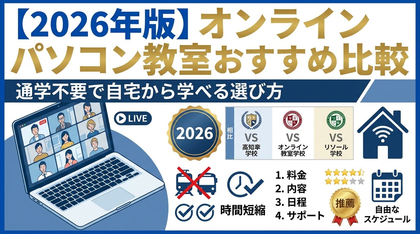 【2026年版】オンラインパソコン教室おすすめ比較|通学不要で自宅から学べる選び方