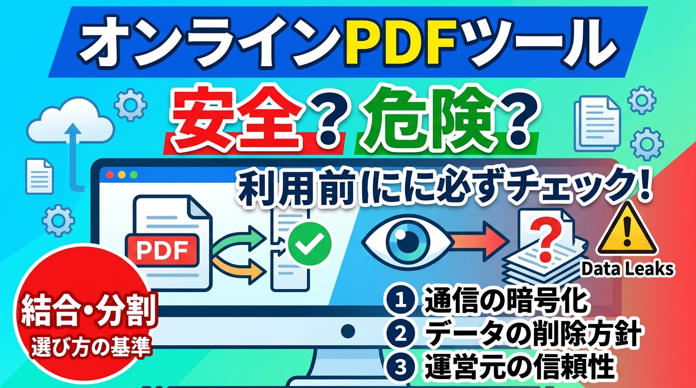 本記事では、オンラインPDFツールの安全性と、結合・分割前の判断基準を初心者向けにわかりやすく解説します。(専門知識は不要です!)