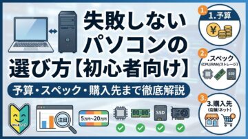 失敗しないパソコンの選び方【初心者向け】予算・スペック・購入先まで徹底解説 「パソコンを買いたいけど、何を選べばいいか全くわからない…」 そんな気持ちで迷っている方は、とても多いのではないでしょうか。家電量販店に行くと数十機種がズラリと並び、スタッフに話しかけられると高いモデルをすすめられてしまう。ネットで調べると専門用語ばかりで、余計に混乱してしまう——そんな経験をされた方もいるかもしれません。…