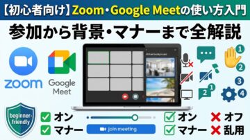 【初心者向け】Zoom・Google Meetの使い方入門|参加から背景・マナーまで全解説 「Zoomに招待されたけど、どうやって参加すればいいんだろう…」「カメラが映らない、声が聞こえないと言われてしまった…」そんな不安を抱えていませんか? オンライン会議は、ここ数年でビジネスの現場だけでなく、地域のサークル活動や習い事、家族との連絡にまで幅広く広がっています。40〜70代の方から「急に参加する…