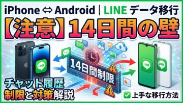LINEをiPhone↔Androidで引き継ぐ制限と対策|14日ルール解説 「前の機種変更ではLINEのトークが戻ったのに、今回はiPhoneからAndroid、またはAndroidからiPhoneに変わるから不安」という方は少なくありません。実はLINEの引き継ぎは、同じOSか異なるOSかで条件が大きく変わるため、買い替え前に制限を知っておくことが大切です。 iPhone…