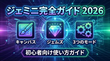 Gemini完全ガイド2026|Canvas・Gems・3モードの使い方を初心者向けに解説 Google Geminiは「名前は聞いたことがあるけれど、ChatGPTやCopilotと何が違うのか分かりにくい」と感じやすいAIツールです。2025年後半から2026年にかけてCanvas、Gems、3つのモード、Scheduled actionsなどが拡充され、初心者でも全体像を整理して理解しやすく…