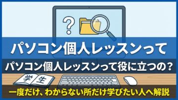 「毎週通うほどではないけれど、Excelのここだけ教わりたい」「Zoomの設定だけ一度見てほしい」と感じることはありませんか。個人パソコン教室や個人レッスン型の教室は、そんな“必要なところだけ学びたい”人に向く受講スタイルです。 個人パソコン教室が向いている人と向いていない人の違い 「わからないところだけ」「一回だけ」受講で解決しやすい内容 料金の見方と、失敗しにくい教室の選び方 こんな方におすす…