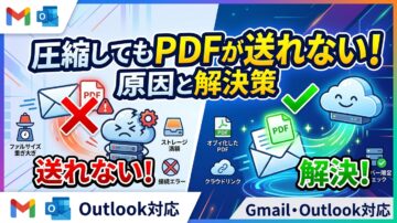 PDFを圧縮したのに、GmailやOutlookでまだ送れない。あるいは提出フォームにアップロードできない。そんな直前トラブルは、PDFの容量だけでなく、送る先ごとの上限やルールの違いでも起こります。 PDFを圧縮したのに送れない主な原因 Gmail・Outlook・提出フォームごとの上限の違い さらに軽くする方法と、添付以外で送る代替手段 こんな方におすすめの記事です メール添付でPDFが容量オ…