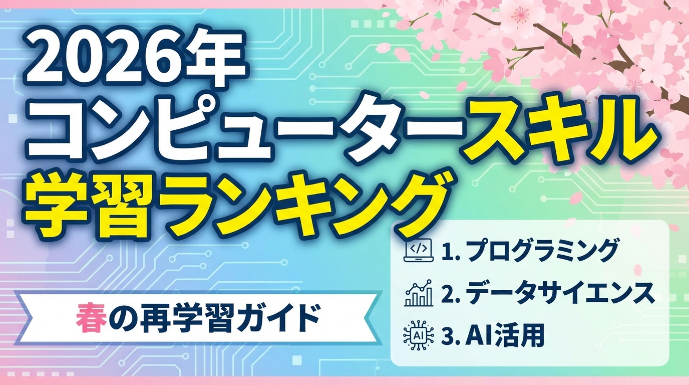 本記事では、パソコン教室で学ぶべきスキルランキング2026を軸に、2026年春の学び直しで優先したいスキル、目的別の選び方、教室タイプの考え方をわかりやすく解説します。(専門知識は不要です!)